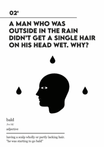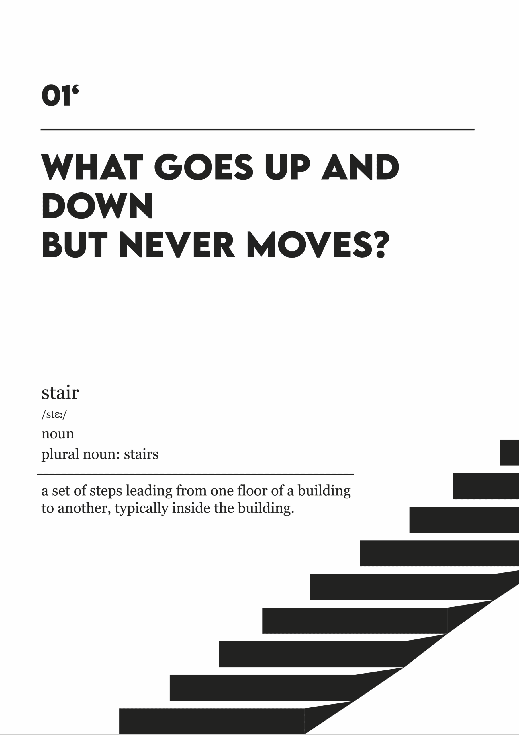 riddles Riddles – Poster Series (2020) This project explores the minimalist presentation of riddles and their answers. Designed as a campaign during the coronavirus pandemic, it aimed to spark curiosity, inspire reflection, and provide a playful mental break in challenging times.